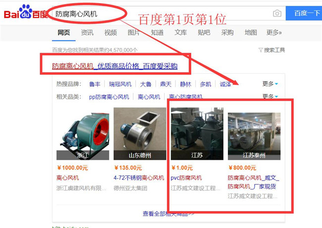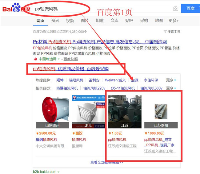 “PP風(fēng)機(jī)”百度愛采購案例截圖展示 :